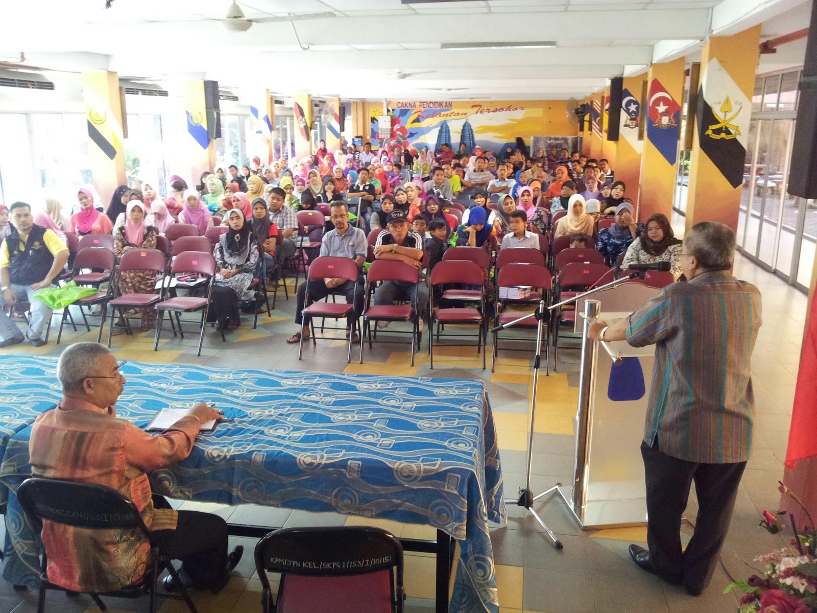Ibubapa murid tahun 2-6 mendengar taklimat daripada Guru Besar SKPG1, Tn.Hj.Mansur Bin Hussain